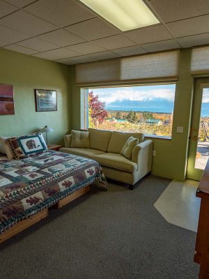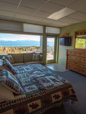 We are located rurally, which affords us a spectacular 180 degree panoramic view of Kachemak Bay.